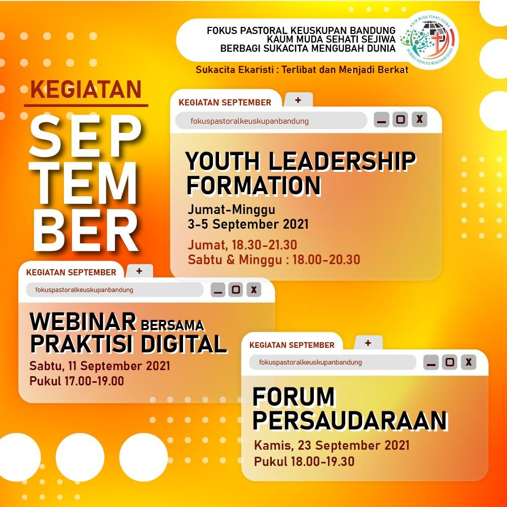 Buat temen temen kaum muda yang penasaran, Ada kegiatan apa aja sih dari Fokus Pastoral Keuskupan Bandung pada Bulan September Ini, nah ini dia yang kalian tunggu tunggu ????