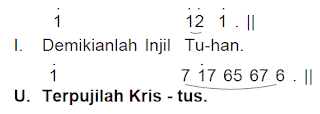 I+U. Bapa kami yang ada di surga, dimuliakanlah nama-Mu, datanglah kerajaan-Mu, jadilah kehendak-Mu di atas bumi seperti di dalam surga. Berilah kami rezeki pada hari ini dan ampunilah kesalahan kami, seperti kami pun mengampuni yang bersalah kepada kami; dan janganlah masukkan kami ke dalam pencobaan, tetapi bebaskanlah kami dari yang jahat.