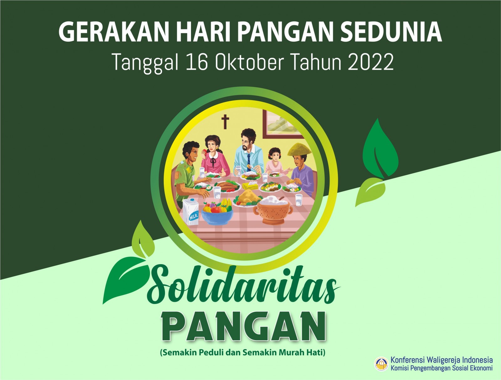 Setiap tahun pada tanggal 16 Oktober masyarakat dunia memperingati Hari Pangan Sedunia (HPS). Demikian pula Gereja Katolik Indonesia memperingatinya sebagai bentuk nyata keterlibatan dalam hidup bermasyarakat (bdk.GS 1). Tema Hari Pangan Sedunia (HPS) Konferensi Waligereja Indonesia (KWI) 2022 adalah “Solidaritas Pangan” (Semakin Peduli dan Murah Hati). Tema ini dibicarakan dalam konteks saat ini di mana dunia dan juga Indonesia sedang menghadapi tantangan dan masalah pangan, seperti pandemi Covid-19 yang sedang melanda dunia belum sepenuhnya teratasi, konflik perang Rusia dan Ukraina, perubahan iklim, serta tidak stabilnya harga pangan.
